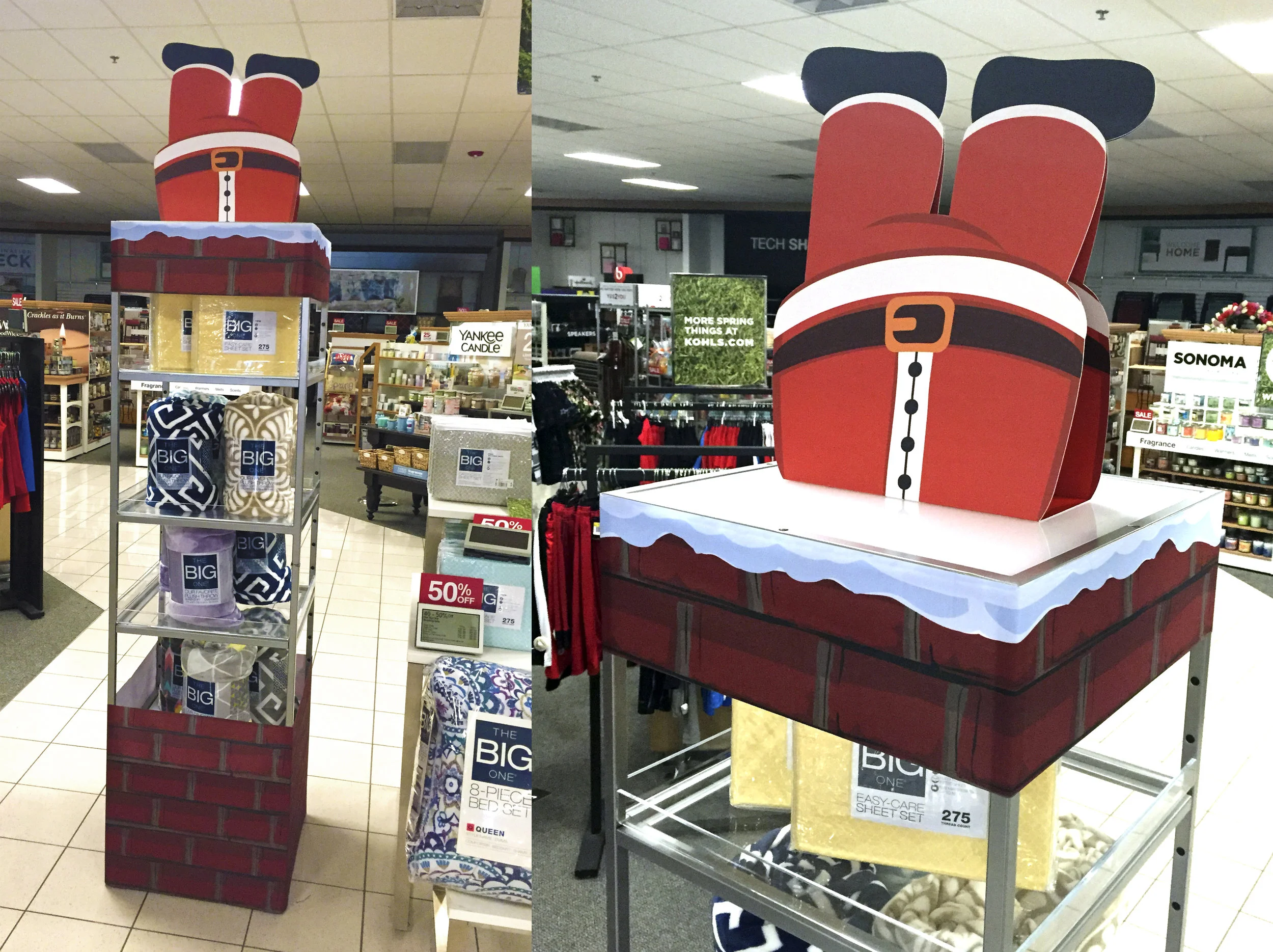 Kohl’s hosts an Annual ISM Vendor Summit Meeting, where all vendors are invited to showcase new and innovative design capabilities as it relates to the Kohl’s brand. Every year there is a themed design challenge. In 2016 the theme was Holiday. These are the designs submitted by my team. The Santa Clause Chimney etagere wrap and topper, anamorphic floor graphic, and holiday ribbon table wrap were my contributions to the submission.